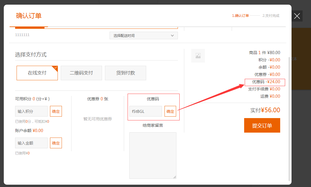 (注意:优惠劵和优惠码同时都有时,只能二选一使用其中一个