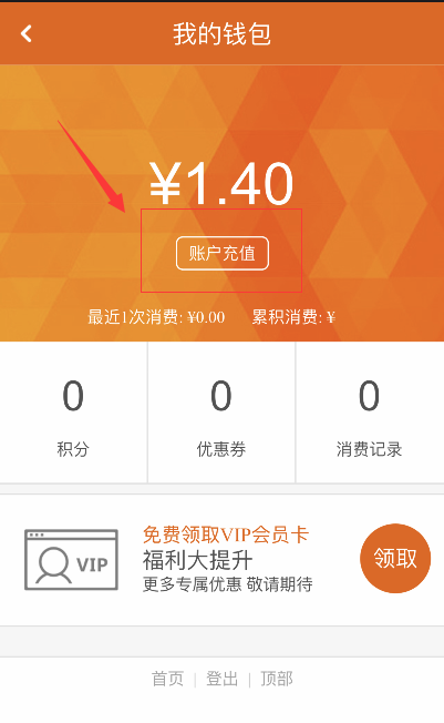 ③.开启之后,前台会员才可以看到充值入口。以pc为例,进入会员中心---我的钱包增加了账户充值和充值记录